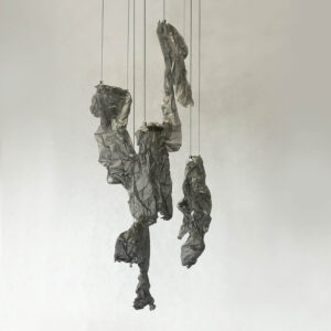 The Silver MESH 5_A chandelier is a delicate, vertical composition of five organic forms with an exceptionally strong expression. The unique shape of the chandelier, combined with the steel mesh from which it is crafted, makes it a small piece of functional art.