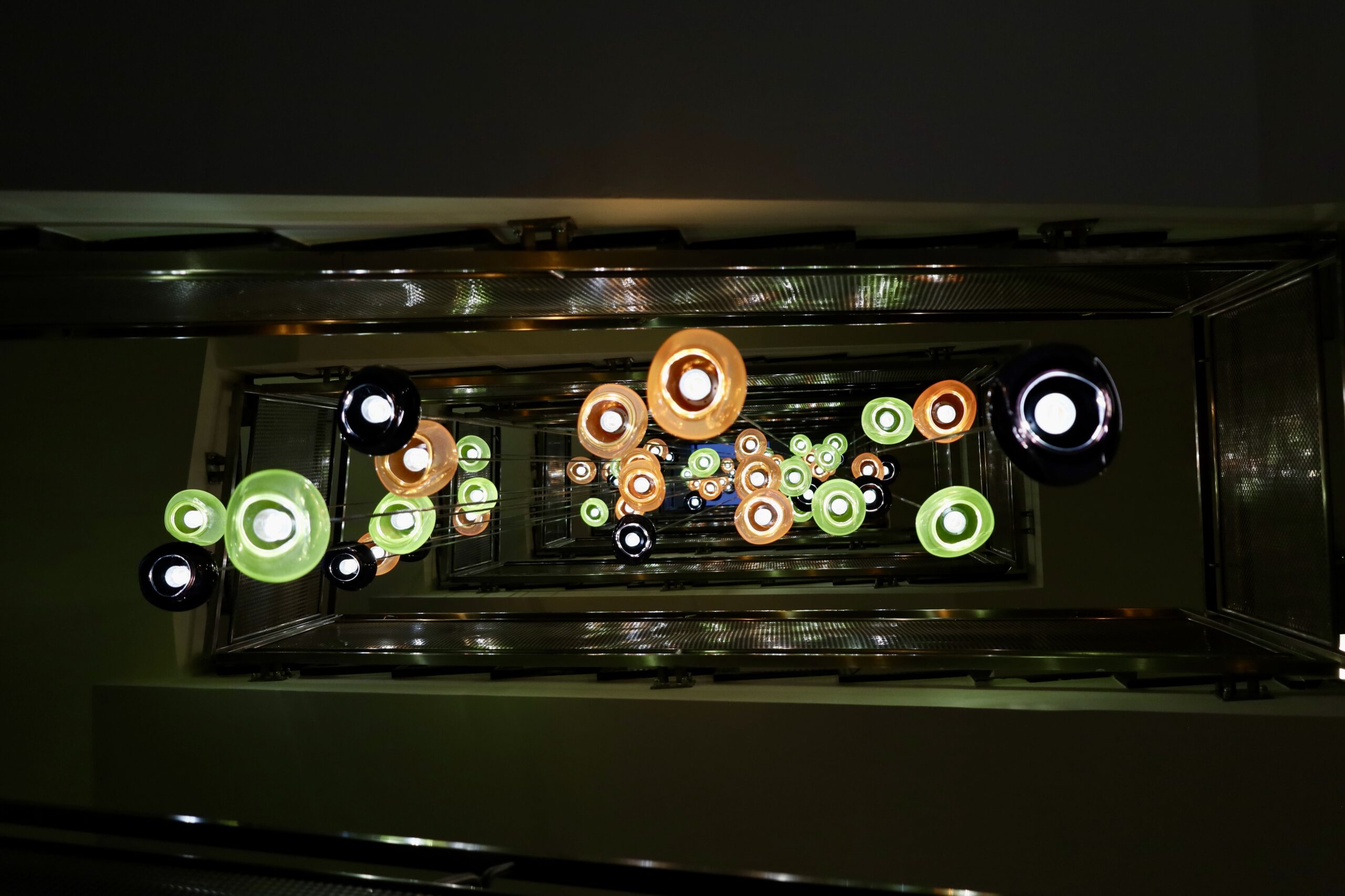 W centrum Warszawy, w butikowym apartamentowcu, powstała instalacja świetlna, której nie da się objąć jednym spojrzeniem. To kompozycja złożona z 90 szklanych kloszy, półtora kilometra przewodu w oplocie i wydmuchiwanym rzemieślniczo szkle…
