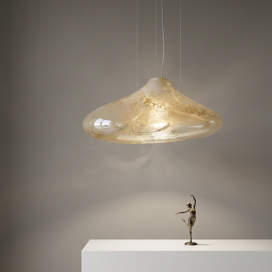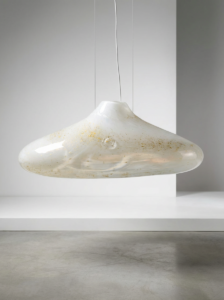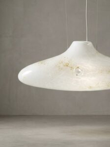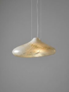 Lampa wisząca CLOUD No.1 to spektakularny szklany klosz o organicznej formie. W większej skali miękkie linie szkła stają się jeszcze bardziej wyraziste, a lampa zyskuje rzeźbiarski charakter.
