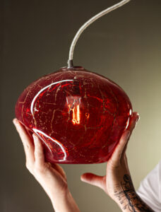 MEDUSE magma to lampa wisząca, która zachwyca swym ognistym, energetycznym kolorem. Dodatkowo zatopione w szkle drobinki złotego pigmentu, tworzą na powierzchni lampy subtelną siatkę złotych smug i pociągnięć niczym spod pędzla artysty. Ponadczasowa forma i wyrazisty kolor nadają lampie rzeźbiarskiego charakteru. Lampa sygnowana jest szklanym stemplem “gl”, czyli znakiem rozpoznawczym marki Gie El. Dowodzi on autentyczności produktu i symbolizuje przywiązanie do detalu.