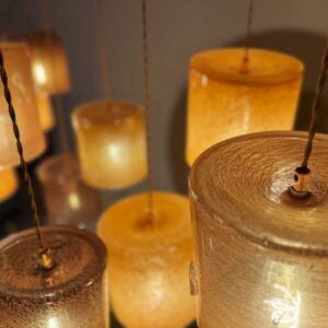 Widoczny na zdjęciach żyrandol CANDLE 15 to jedyny i niepowtarzalny egzemplarz, który powstał w wyniku pracy utalentowanych, polskich hutników i koncepcji kreatywnej projektantów Gie El. Ta unikatowa świetlna instalacja sprawdzi się we wszystkich przestrzeniach, w których światło ma za zadanie inspirować i tworzyć kameralny nastrój.