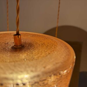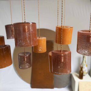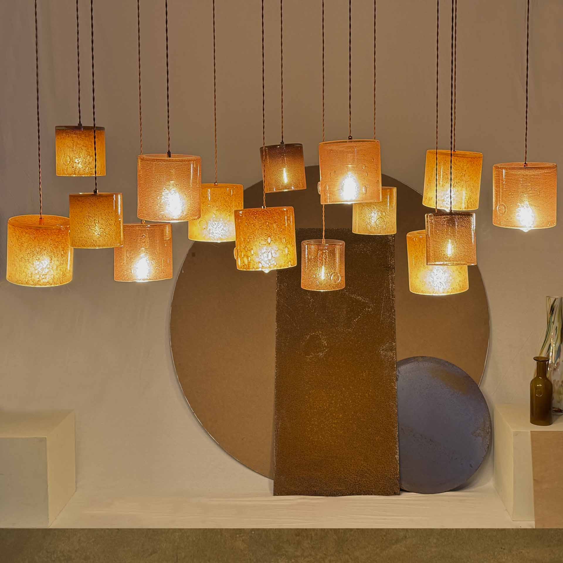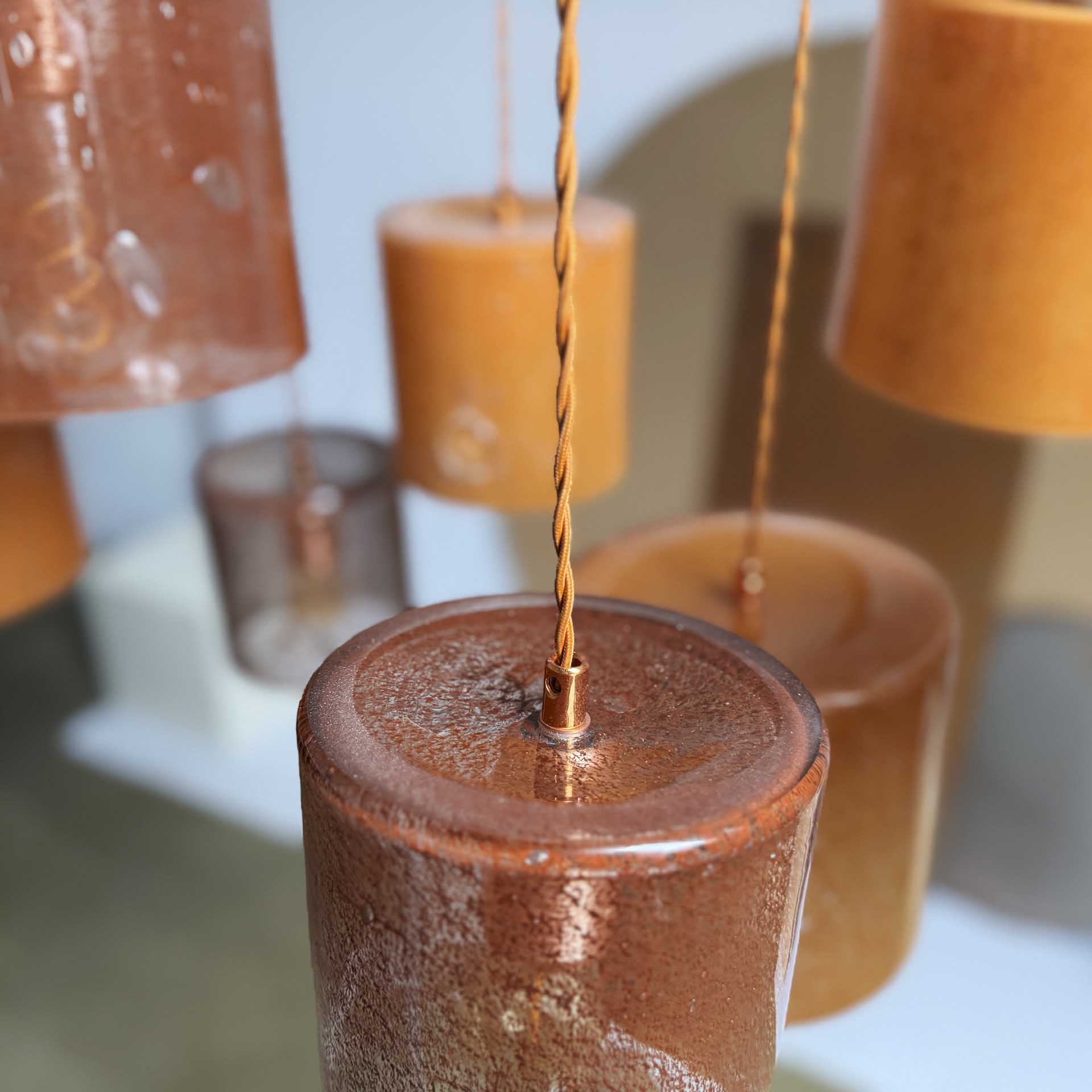 Żyrandol CANDLE 15 składa się z 15 ręcznie formowanych i ręcznie barwionych kloszy z masywnego szkła o niesamowicie głębokich barwach rudości, cegły i brązu. W żyrandolu zastosowano oryginalne detale: wyraziste klosze zostały wzbogacone miedzianymi oprawkami, miedzianymi dodatki i przepięknym, rudym, plecionym przewodem. To szczegóły, które dodają kompozycji smaku. Kompozycja CANDLE 15 to ściśle zdefiniowany projekt, ale wysokość żyrandola, sposób mocowania go do sufitu oraz kolor podsufitki mogą zostać dostosowane do indywidualnych potrzeb. Stąd trzytygodniowy czas realizacji zamówienia.