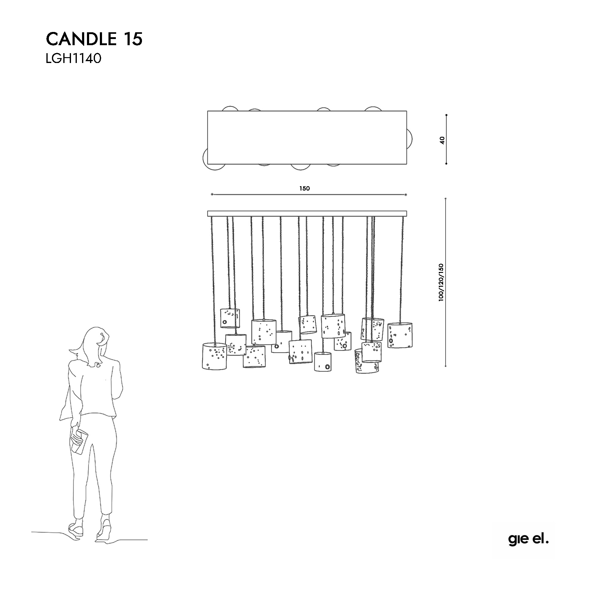 CANDLE 15 to żyrandol, który igra z porządkiem – regularny w formie, a jednocześnie figlarny w kompozycji. Jego ręcznie formowane klosze rozświetlają przestrzeń ciepłym światłem, przypominającym płomienie świec. To świetlny spektakl, który za każdym razem opowiada nową historię.