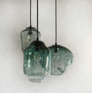 Żyrandol FOREST 3 to kompozycja trzech lamp stworzonych z nieprzeniknionego, turkusowego szkła. Ręcznie wytwarzane klosze, wszystkie wyjęte z piecy polskiej huty. Organiczny kształt i forma. Wszystko razem tworzy charakter tej autorskiej kompozycji.