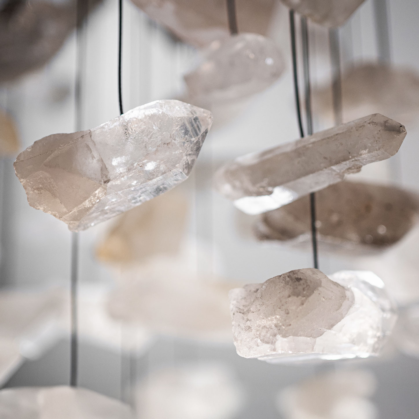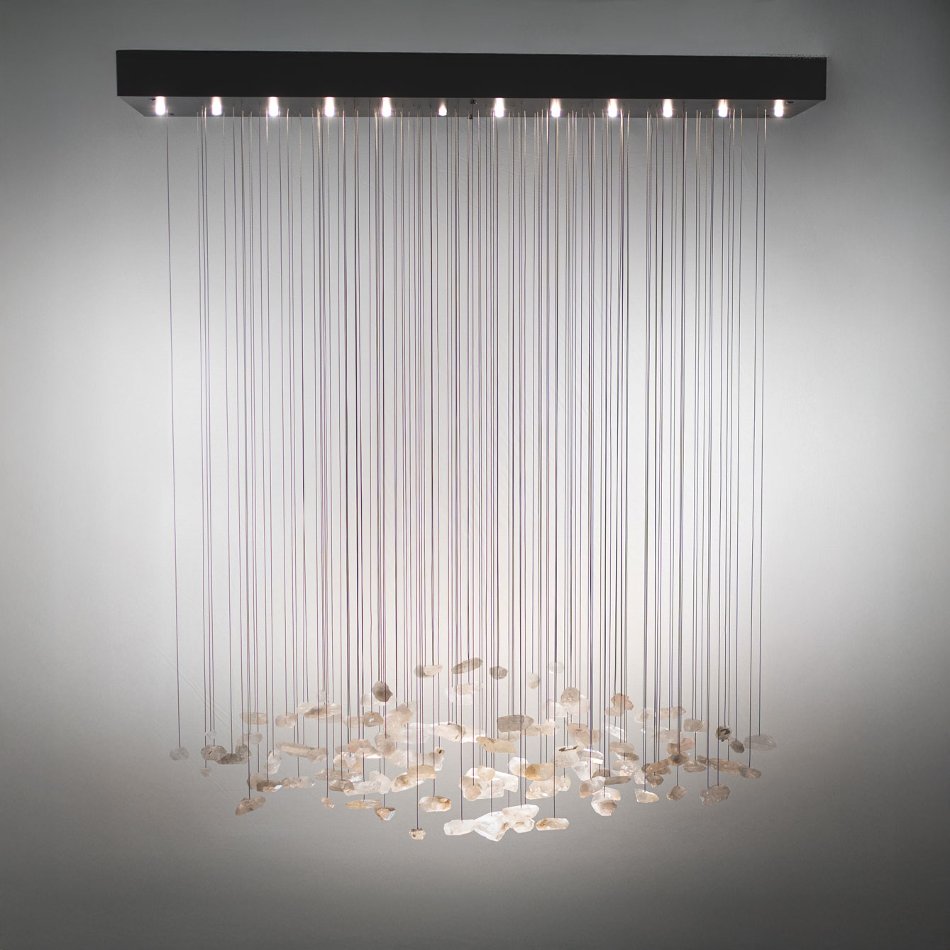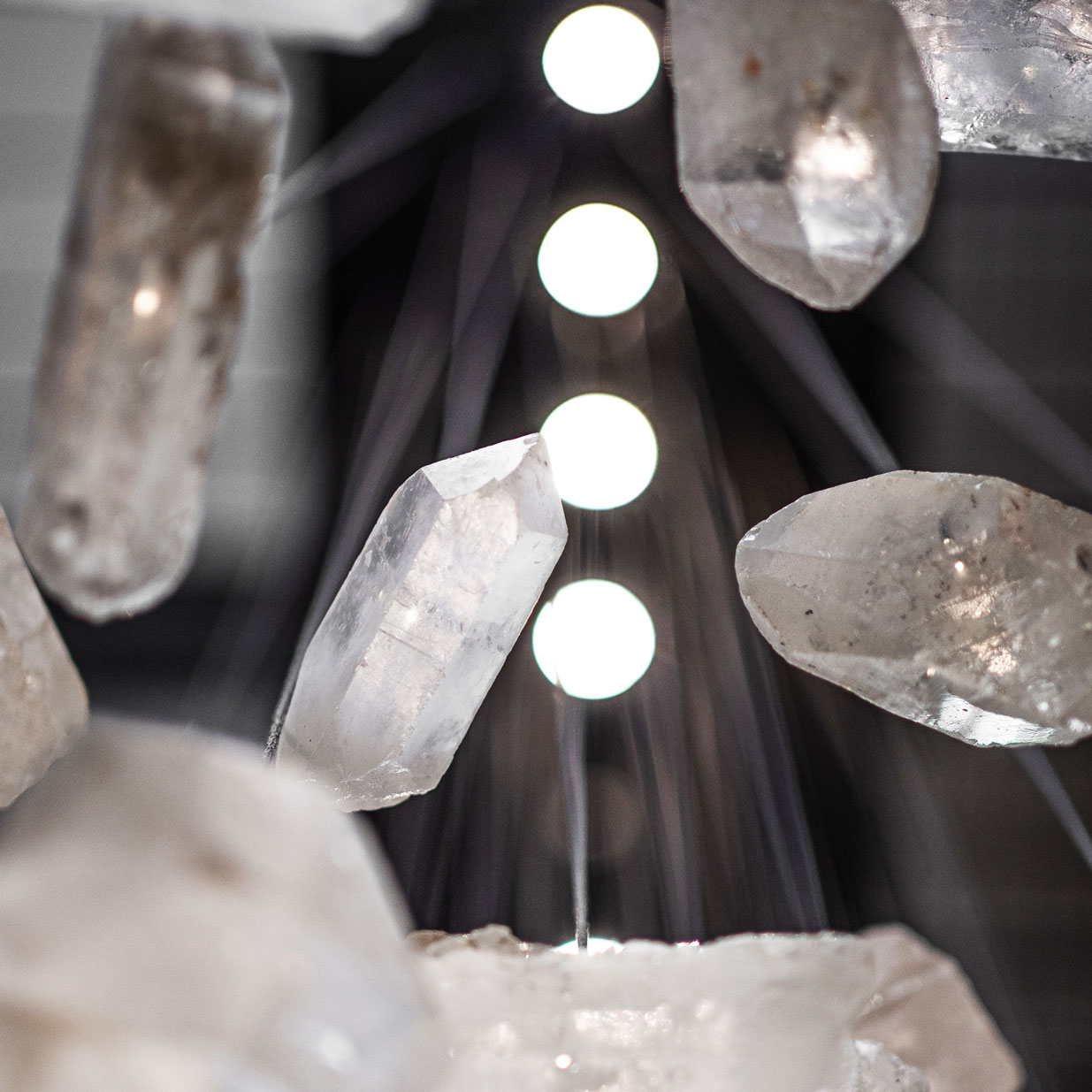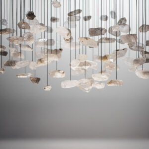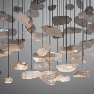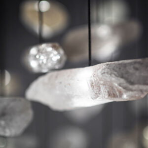 Żyrandol GENIUS 7 to hipnotyzująca opowieść o nieoczywistym materiale: krysztale górskim, który idealnie łączy się ze światłem, przyjmując je, a następnie oddając w formie subtelnego blasku.