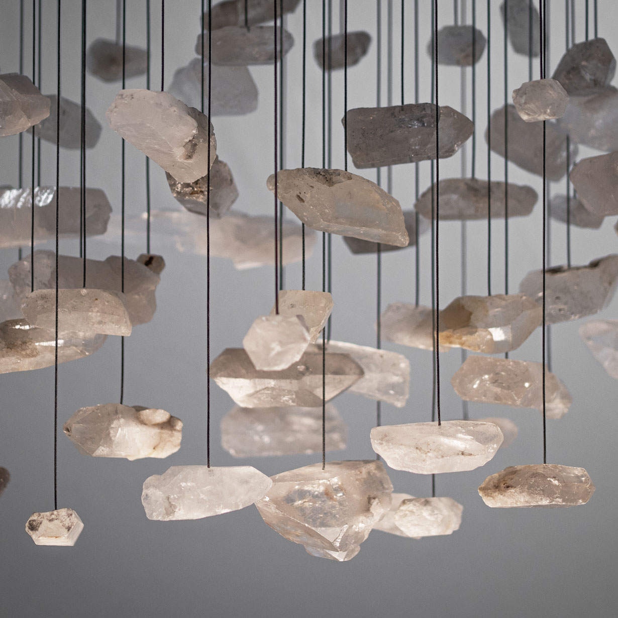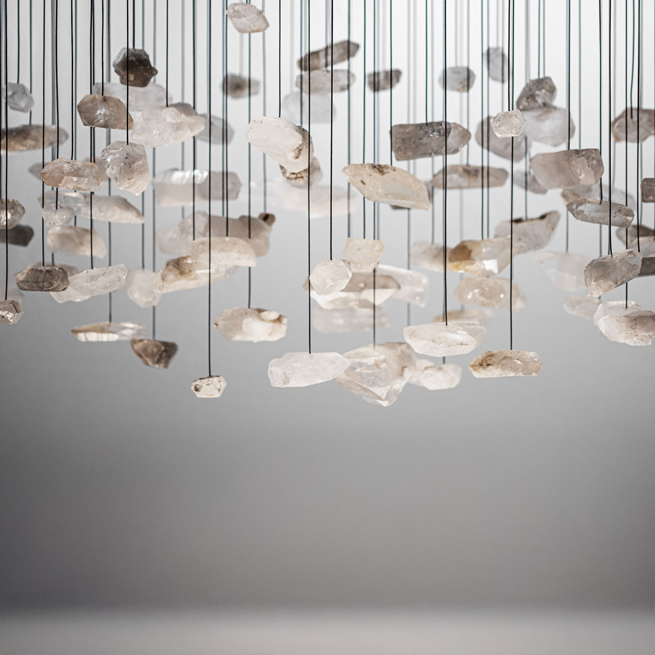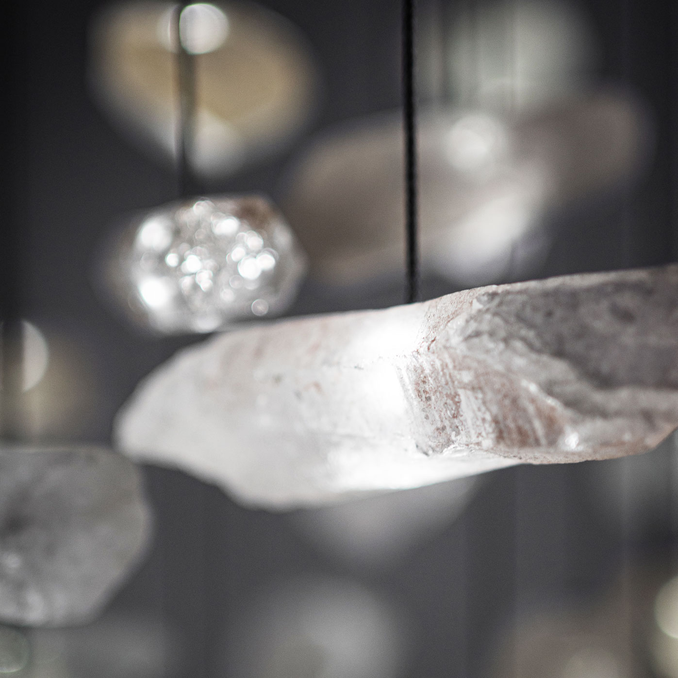 Projektantka Maria Rypuła, dostrzegła w tym surowym kamieniu potencjał i postanowiła przy jego udziale stworzyć produkt, który ma za zadanie ubogacać wnętrza. “Gdy pierwszy raz spojrzałam na surową bryłę tego kamienia, spodobała mi się jego naturalna forma. Nieobrobiona, nieregularna, dzika. Każda różna. Pomyślałam, że jest to produkt interesujący. Jednak w momencie, gdy przyłożyłam do niego światło latarki swojego smartfona, oniemiałam. To było jak kulinarne połączenie dwóch składników. Każde dobre. Jednak dopiero po ich połączeniu otrzymujemy smak wyjątkowo zaskakujący. To samo było z połączeniem światła i kryształu. Sposób w jaki światło przenika przez kryształ górski jest hipnotyzujący. Wiedziałam, że czeka nas niesamowite wyzwanie stworzenia nowoczesnego żyrandola.”