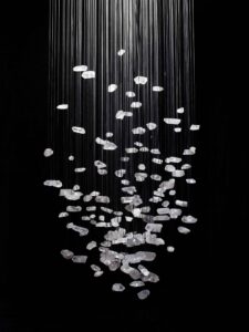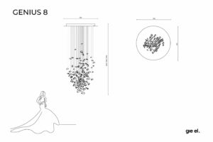 GENIUS 8 to efektowny i nowoczesny żyrandol składający się z ponad stu sześćdziesięciu naturalnych kryształów górskich o organicznych kształtach. Ta imponująca kompozycja stanowi centralny element w każdym wnętrzu, przyciąga wzrok, dodaje elegancji i tworzy unikatowy nastrój. To żyrandol premium w nowoczesnym wydaniu.