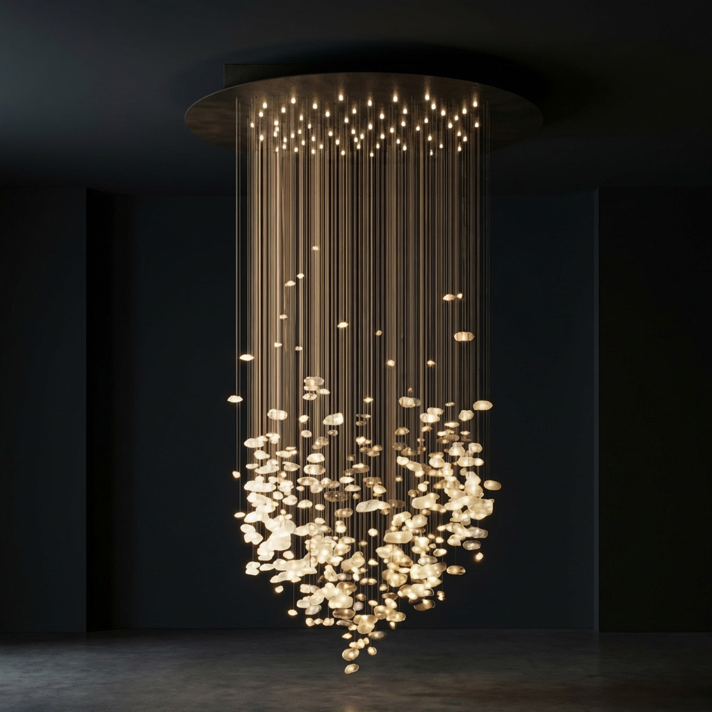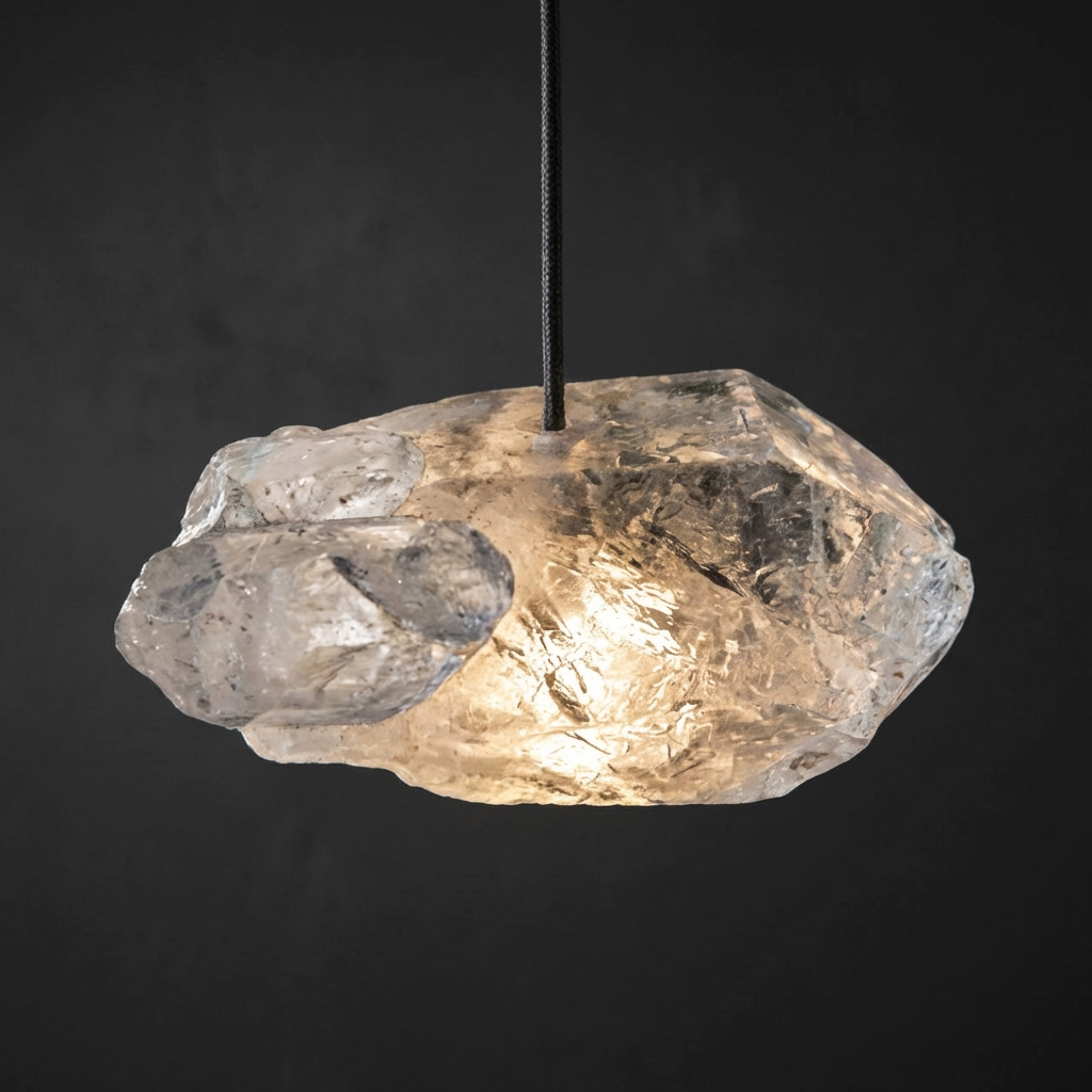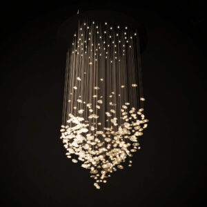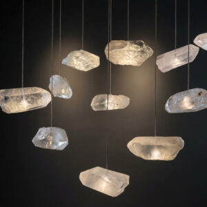 Projektantka Maria Rypuła dostrzegła potencjał surowych kryształów górskich i postanowiła wykorzystać je do stworzenia oświetlenia, które wzbogaca wnętrza. „Kiedy po raz pierwszy spojrzałam na surowe kryształy, zafascynowała mnie ich naturalna forma – surowa, nieregularna, dzika, każdy kamień inny. Kiedy jednak naświetliłam je światłem latarki ze smartfona, byłam oczarowana. To było jak połączenie dwóch doskonałych składników w kuchni. Ale dopiero ich wspólna praca ujawnia prawdziwy, zaskakujący smak. To samo zdarzyło się w przypadku połączenia światła i kryształu. Sposób, w jaki światło przenika przez górskie kryształy, jest hipnotyzujący. Wiedziałam, że stoi przed nami niezwykłe wyzwanie w tworzeniu nowoczesnego żyrandola.”
