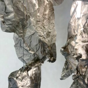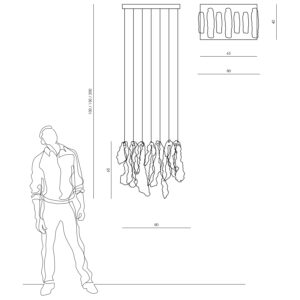 Srebrny żyrandol MESH 7_B to produkt o rzeźbiarskiej wyrazistości, który ma wprowadzić do wnętrz artystycznego ducha. Żyrandol składa się z siedmiu organicznych form ze stalowej siatki, ułożonych horyzontalnie, które wspólnie tworzą futurystyczną kompozycję oświetleniową.