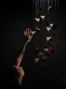 Nowoczesny żyrandol PORTAL to część unikatowej, rzeźbiarskiej kolekcji oświetlenia ELEMENTS. Wszystkie żyrandole tej serii ukazują ulotną naturę roślinności w nowoczesnym, surowym wydaniu. Stalowe obiekty, zawieszone na cienkich linkach, opowiadają historię opadających, wirujących na wietrze liści.