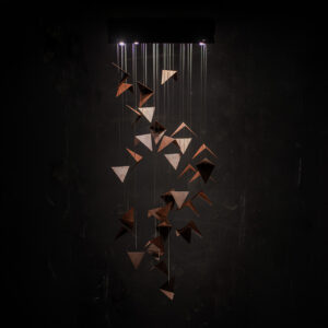 Geometryczne obiekty, z których składa się żyrandol zostały precyzyjnie wycięte laserowo z cienkiej stali, a następnie poddany naturalnemu procesowi rdzewienia i zabezpieczone przezroczystą matową powłoką, aby zabezpieczyć je przed kruszeniem. PORTAL rdzawy prezentuje różne odcienie oranżu, miedzi, brązu i złota, co sprawia, że jego kolorystyka odzwierciedla kolory jesieni. To żyrandol premium do nowoczesnego wnętrza.