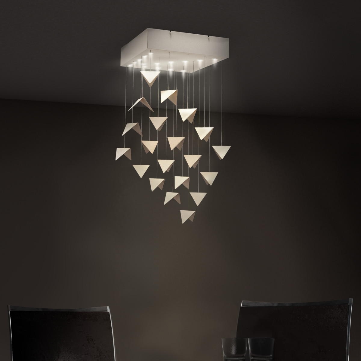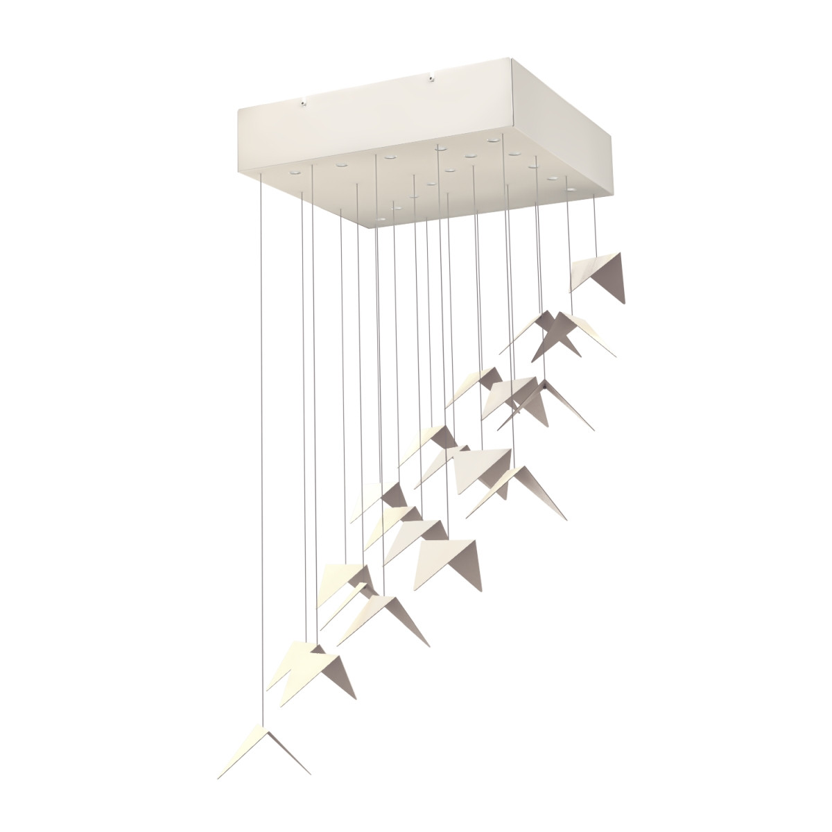 Zachwyca geometrią i proporcjami. Żyrandol RECT stworzony, by cieszyć dobrym wzornictwem i zjawiskową harmonią kompozycji. Ulotny i zwiewny niczym poderwane do lotu ptaki.