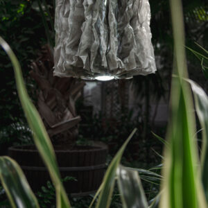 Żyrandol STORM_B srebrny to artystyczna kompozycja wykonana ręcznie ze stalowej siatki. Jego fantazyjna forma, inspirowana żywiołem tropikalnego cyklonu, wnosi do wnętrza subtelne, nastrojowe światło, które tworzy delikatne cienie.