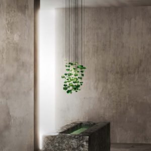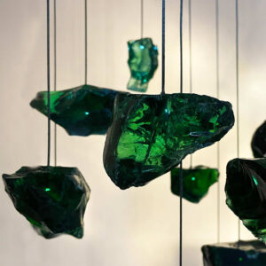 Żyrandol VERDE 6 przenosi myślami w przestrzeń migoczących na niebie gwiazd. Jego designerska forma to odzwierciedlenie astralnego piękna, z blisko 100 kawałkami surowego, szmaragdowego szkła, które unoszą się w powietrzu emitując subtelne światło i wnosząc tajemniczą aurę.